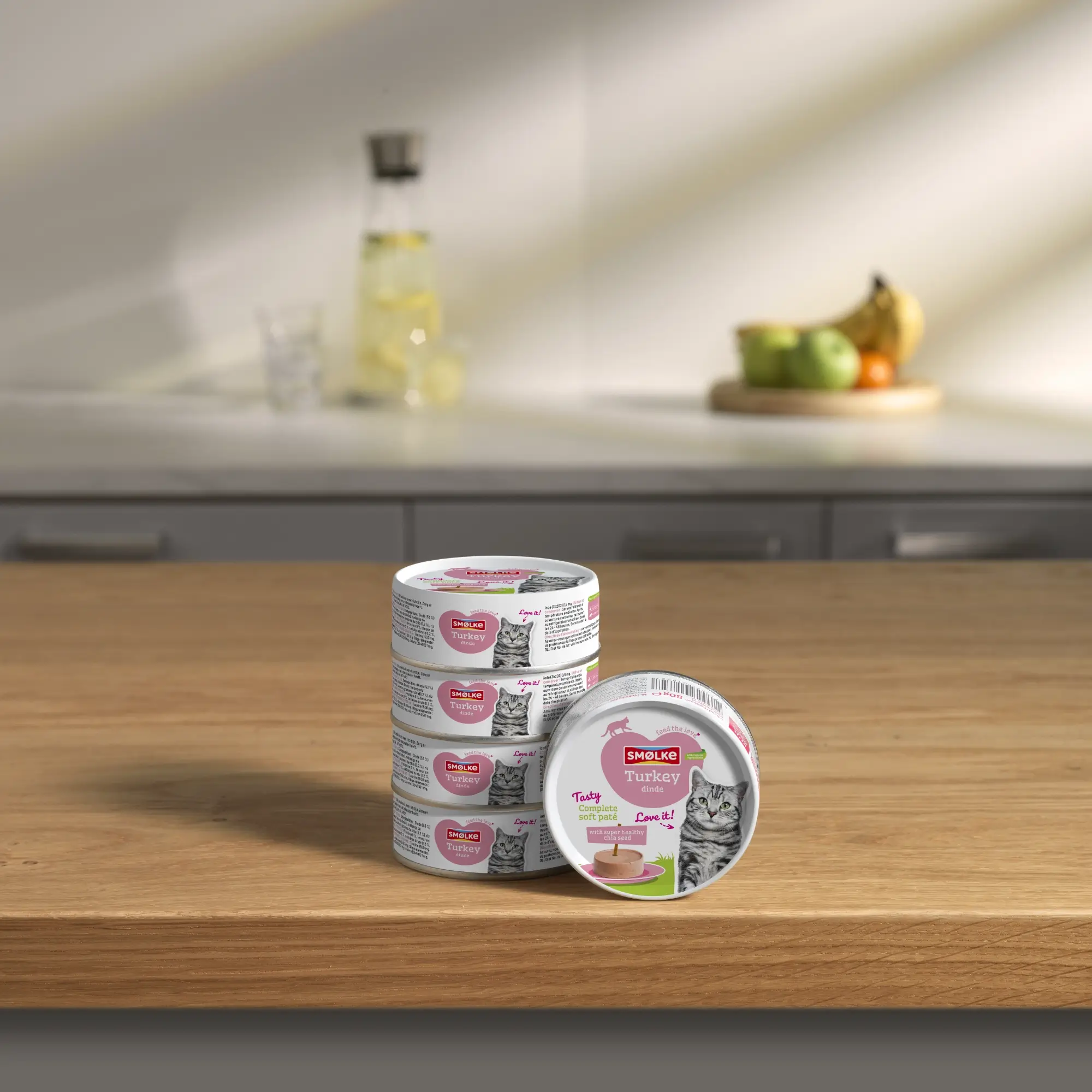 Même si votre chat raffole des croquettes de Smølke, le fait de trouver de temps en temps quelque chose d’autre dans sa gamelle est la preuve du véritable løve qui vous lie à votre compagnon à quatre pattes. Et Smølke est là pour vous aider aussi. Vous trouverez également dans notre assortiment des Soft Patés, tels que ceux à la dinde. En tant que connaisseurs, nous savons que c’est précisément l’aliment préféré de tous les chats. C’est pourquoi le Smølke Soft Paté Turkey est aussi riche en dinde.