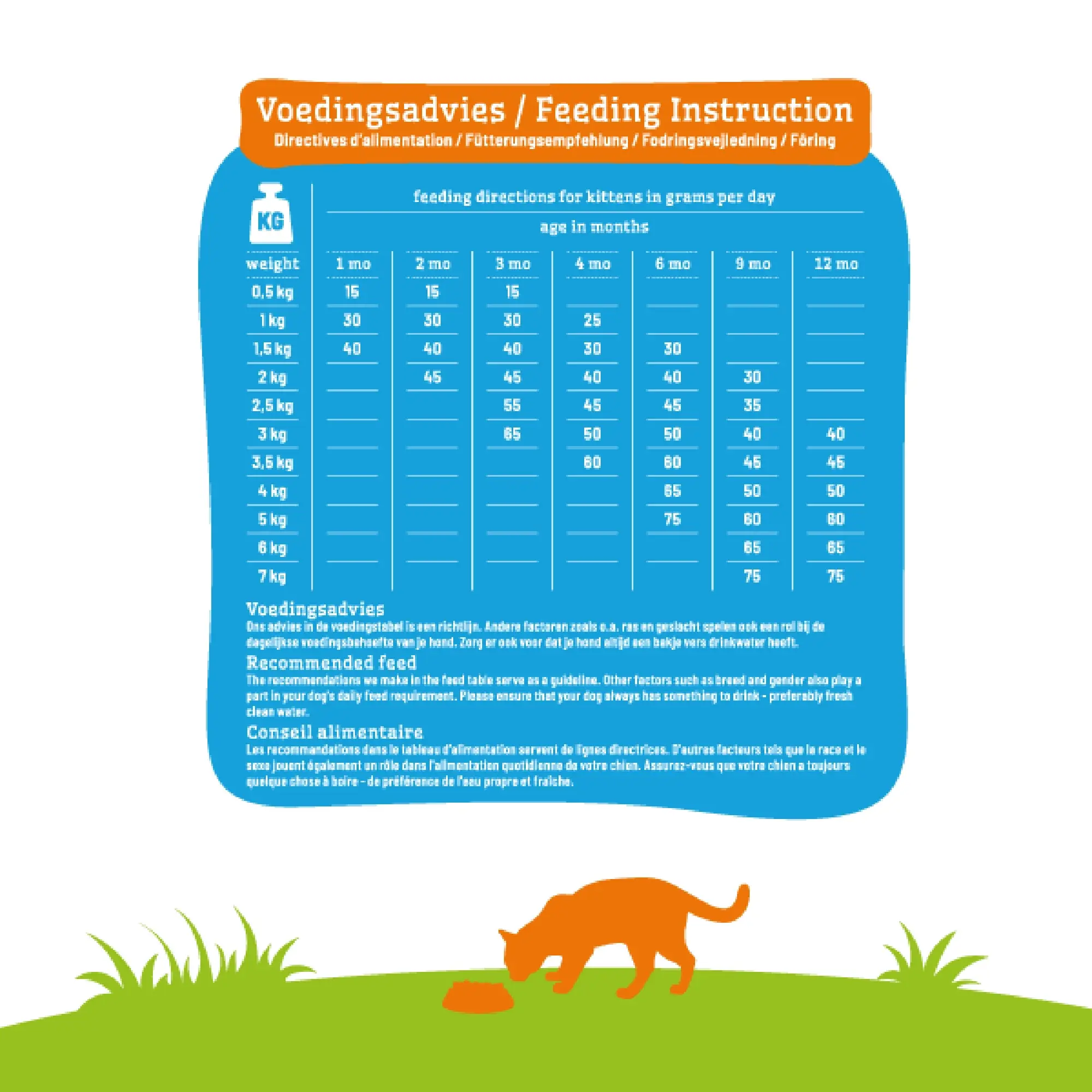 Heb je ook zo’n kleintje in huis die het liefst de hele dag door op standje ‘play’ staat? Leuk. Maar al dat spelen kost je kitten energie. En jou wat extra aandacht voor de voeding. Jonge katjes hebben wel wat meer nodig dan gewone voeding. Bijvoorbeeld calcium en vitamine D, waardoor de ontwikkeling van gezonde botten en tanden een zetje krijgt. En het darmstelsel van je kitten is weer blij met de ondersteuning van prebiotische voedingsvezels.